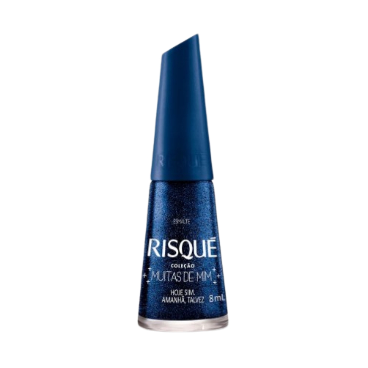 O Esmalte Risqué Metalizado Hoje Sim. Amanhã, Talvez 8ml é um azul marinho escuro metalizado com partículas pequenas e uniformes de glíter furta-cor. Ele faz parte da coleção Muitas de Mim que é composta por 5 esmaltes hipoalergênicos, são 3 esmaltes cremosos e 2 metalizados. Os cremosos são: Me Poupe, Mas Quem Me Dera (violeta escuro com fundo acinzentado); Saudades... Passou! (verde escuro com fundo azulado), De Moletom e Salto (rubi com fundo vinho) e o outro metalizado Carregada no Básico (dourado suave com partículas de brilho dourado). Risqué: a vida em cores! A coleção Muitas de Mim chegou para celebrar a diversidade e mostrar as muitas personalidades que você pode assumi, inclusive com esmalte. São diferentes nuances, tons e cores de quem você é! Experimente a nova coleção Muitas de Mim para você que é única e ao mesmo tempo, várias.
