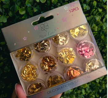 Kit 12 potinhos de folha de ouro