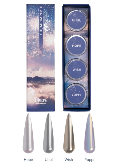 A Coleção Pirimpimpim foi desenvolvida com um toque de mágica e são quatro pós iridescentes: Uhul, Hope, Wish e Yuppi.