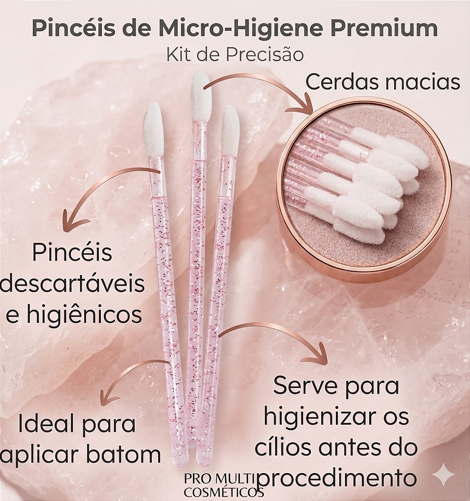 Pincel aplicador com cerdas de nylon macias, podendo ser utilizadas em inúmeras forma e mantendo seu trabalho higiênico, seguro e confiável por ser descartável.